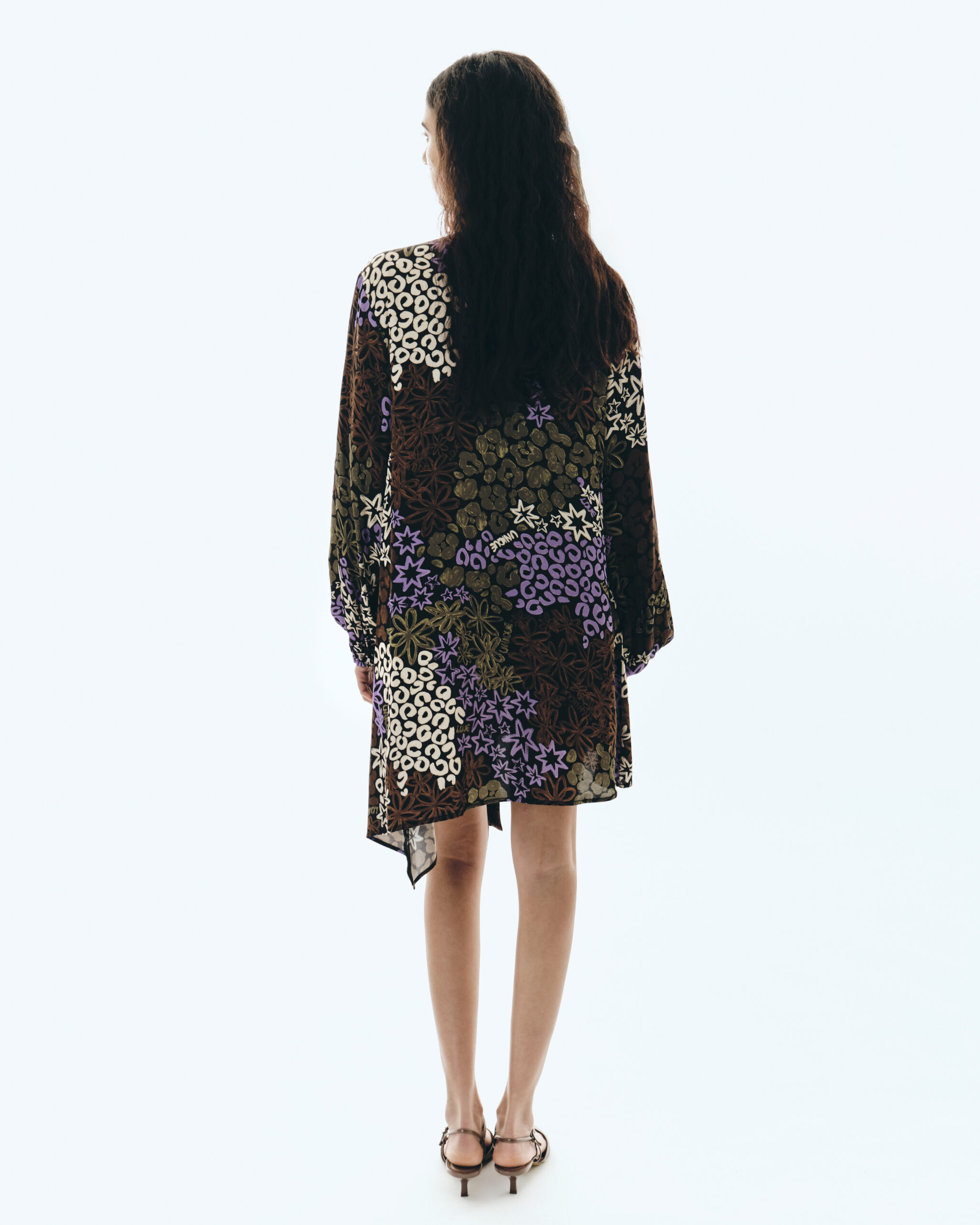 ABITO SVASATO CON SCIARPA MANICA LUNGA LUNGHEZZA AL GINOCCHIO IN FANTASIA VISCOSA MACULAMIX