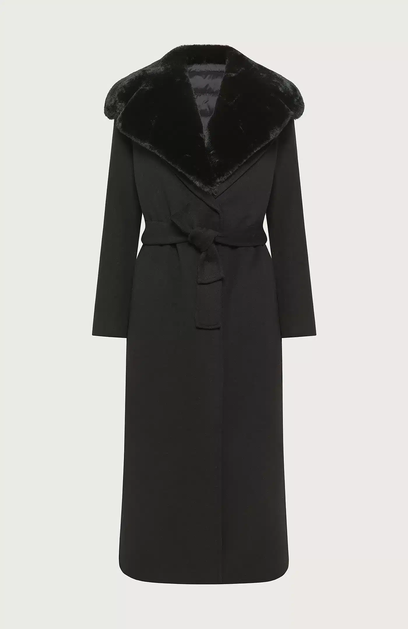 cappotto lungo con gilet imbottito staccabile con collo in pelliccia in lana con cintura e tasche a filo
