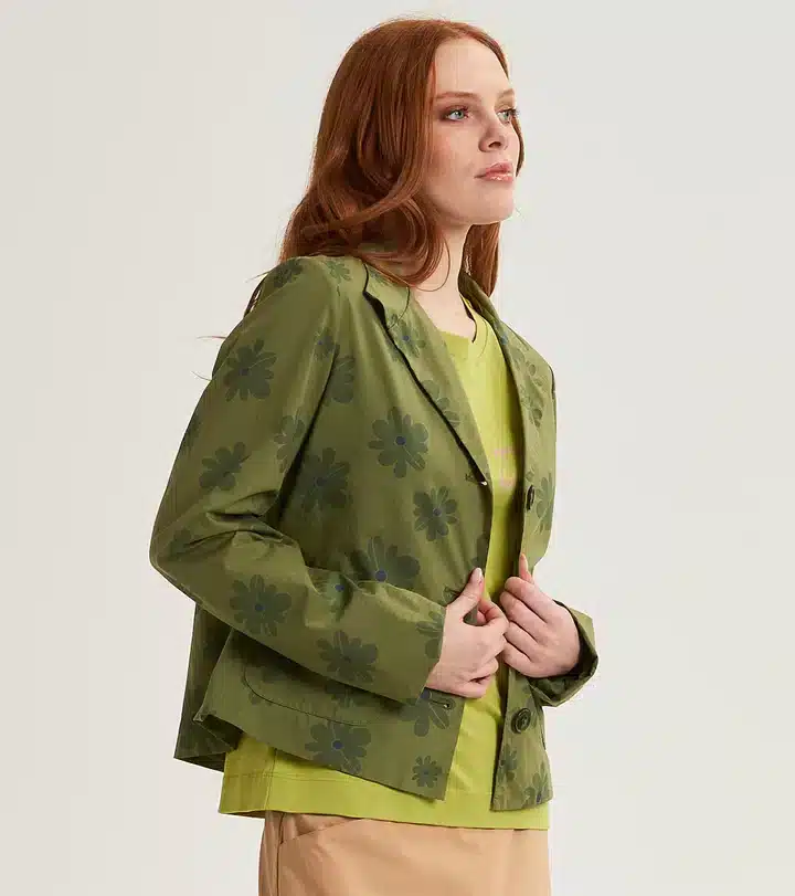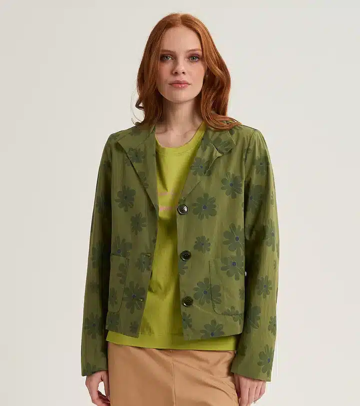 Scegli la giacca realizzata in cotone e impreziosita con una stampa floreale all over. Il modello ha collo a revers, chiusura con tre bottoni e tasche applicate. Il design cropped e leggermente cropped dona al look un tocco vivace.
