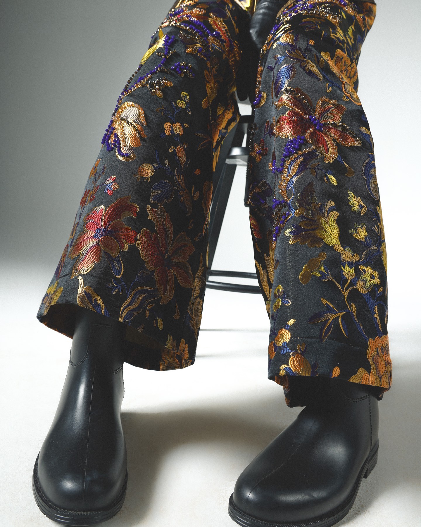 PANTALONE A PALAZZO IN BROCCATO RICAMATO TADASHI