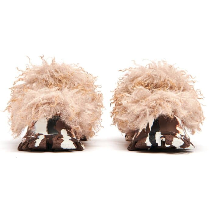 Sabot Multimateriale eco pelliccia. Fodera di pelo. Suola in gomma outdoor. Altezza suola 30. Plantare estraibile