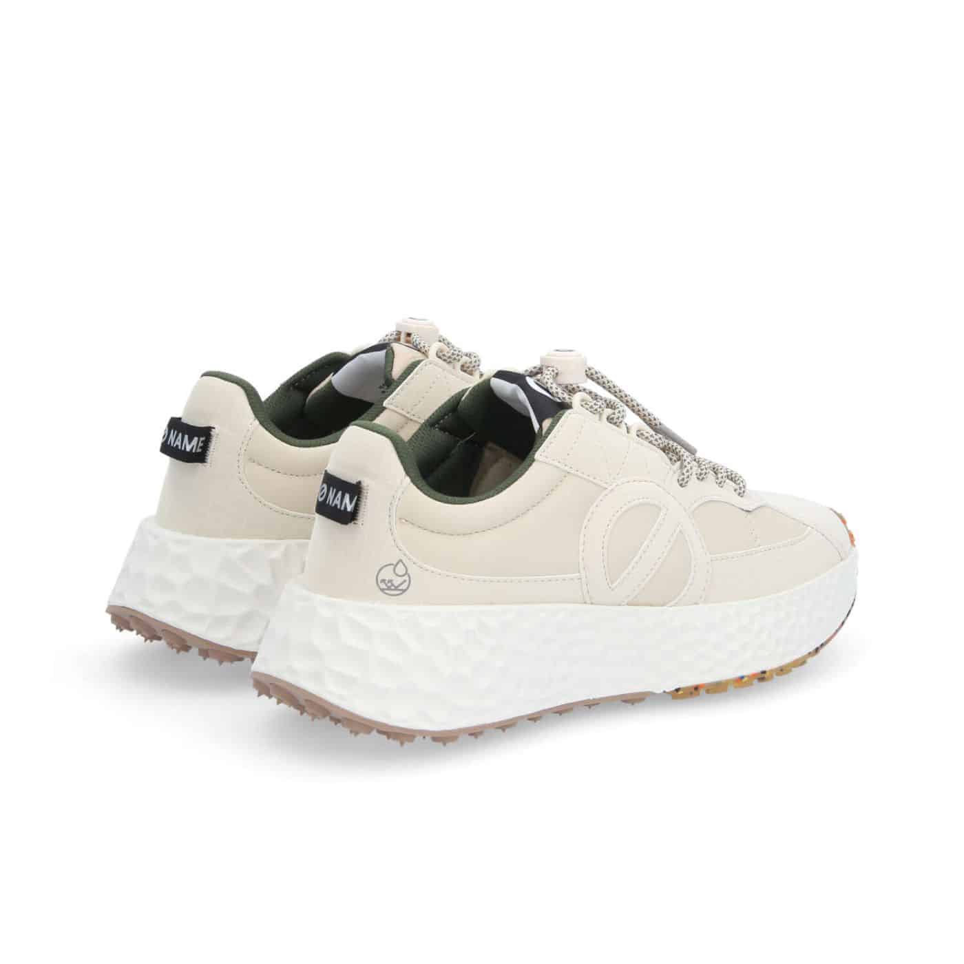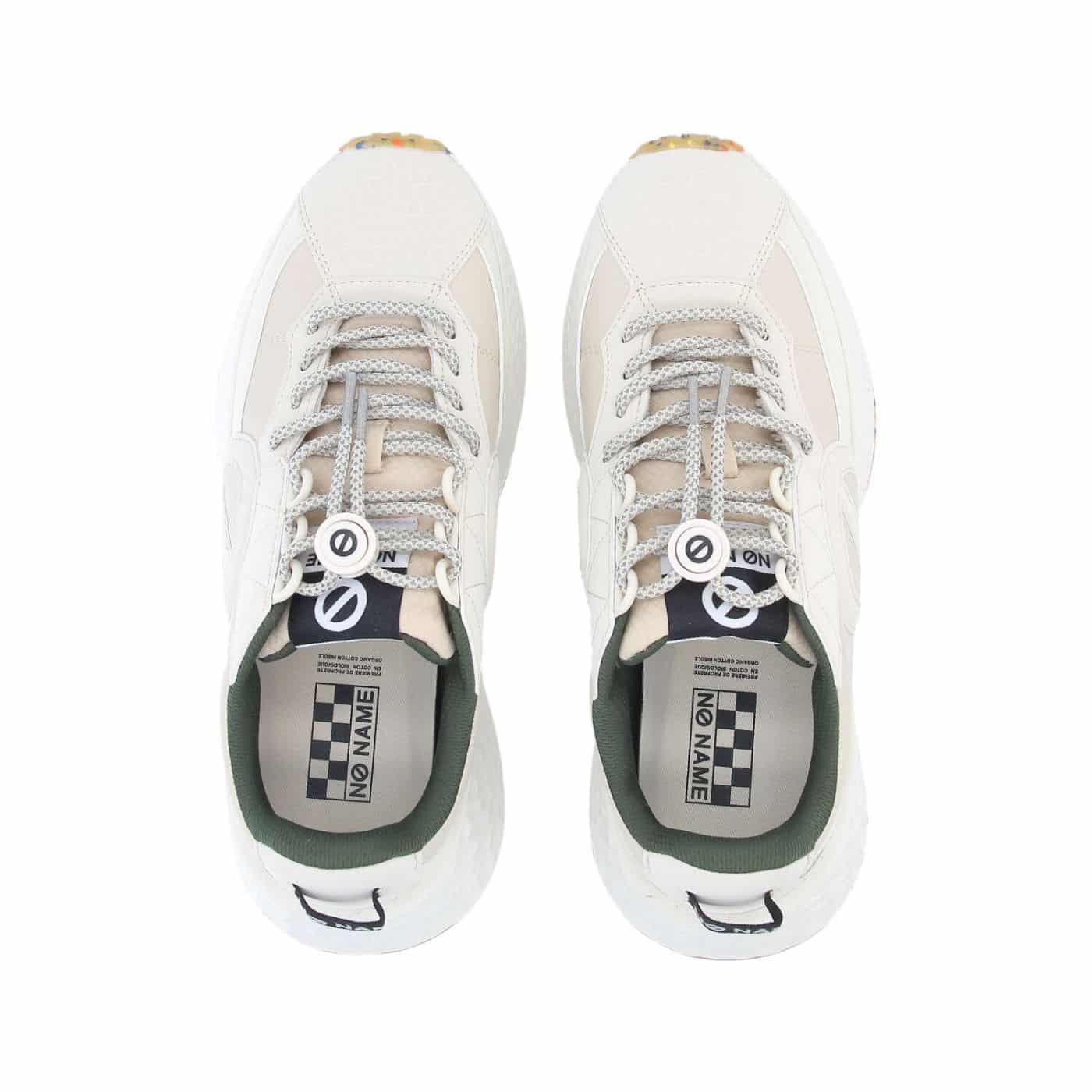 La mitica sneaker di NO NAME: La CARTER RUNNER. Si distingue per un’elegante combinazione composta da due materiali diversi: poliestere riciclato e certificato GRS da una parte, e una tomaia in scamosciato di vacchetta dall’altra. Questo abbinamento unico è un perfetto mix di stile e longevità. Il connubio di materiali conferisce una texture accattivante e un look raffinato a questa sneaker, che è perfetta per uno stile urbano attuale.Colore : Bianco