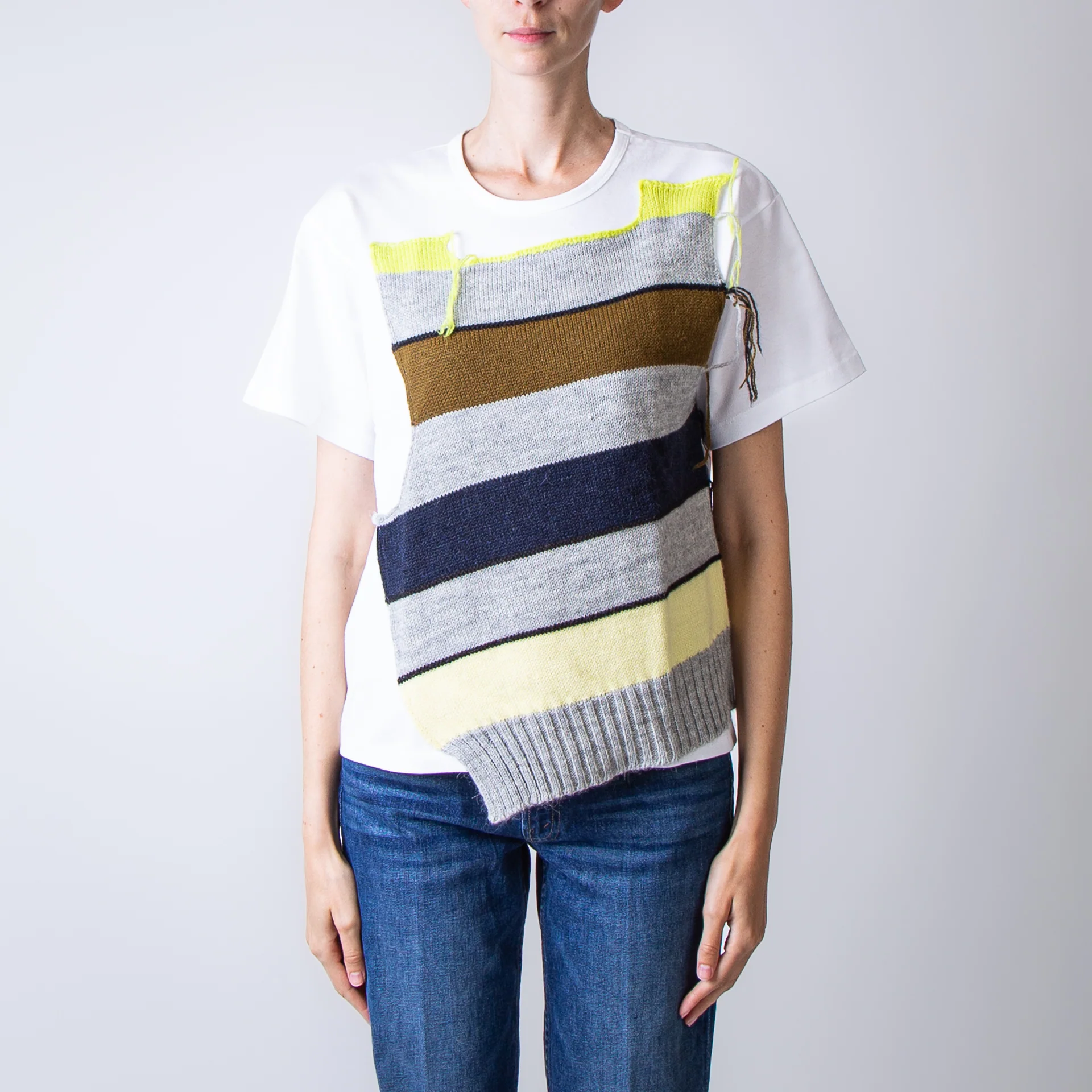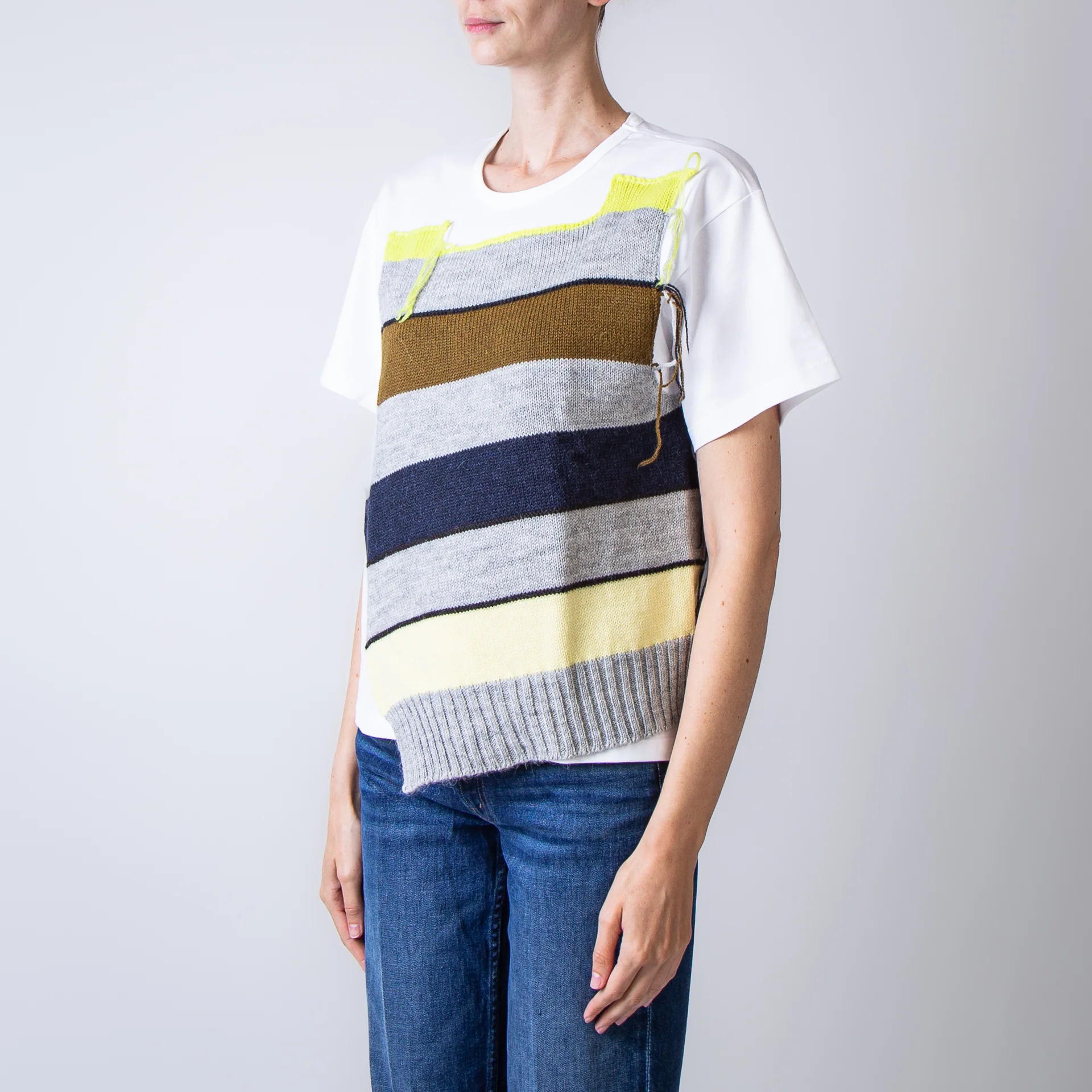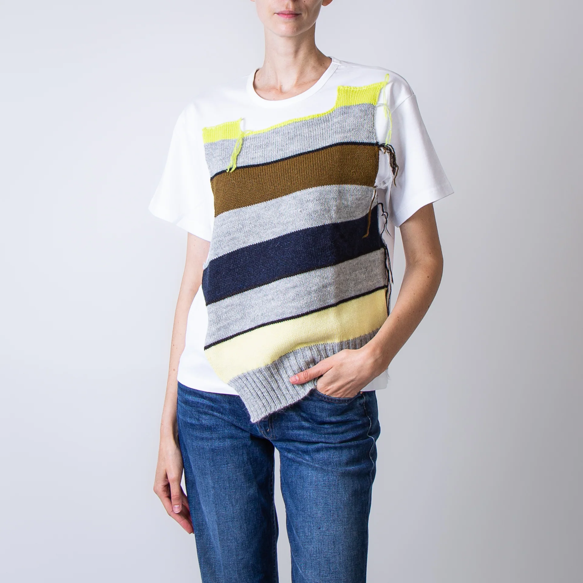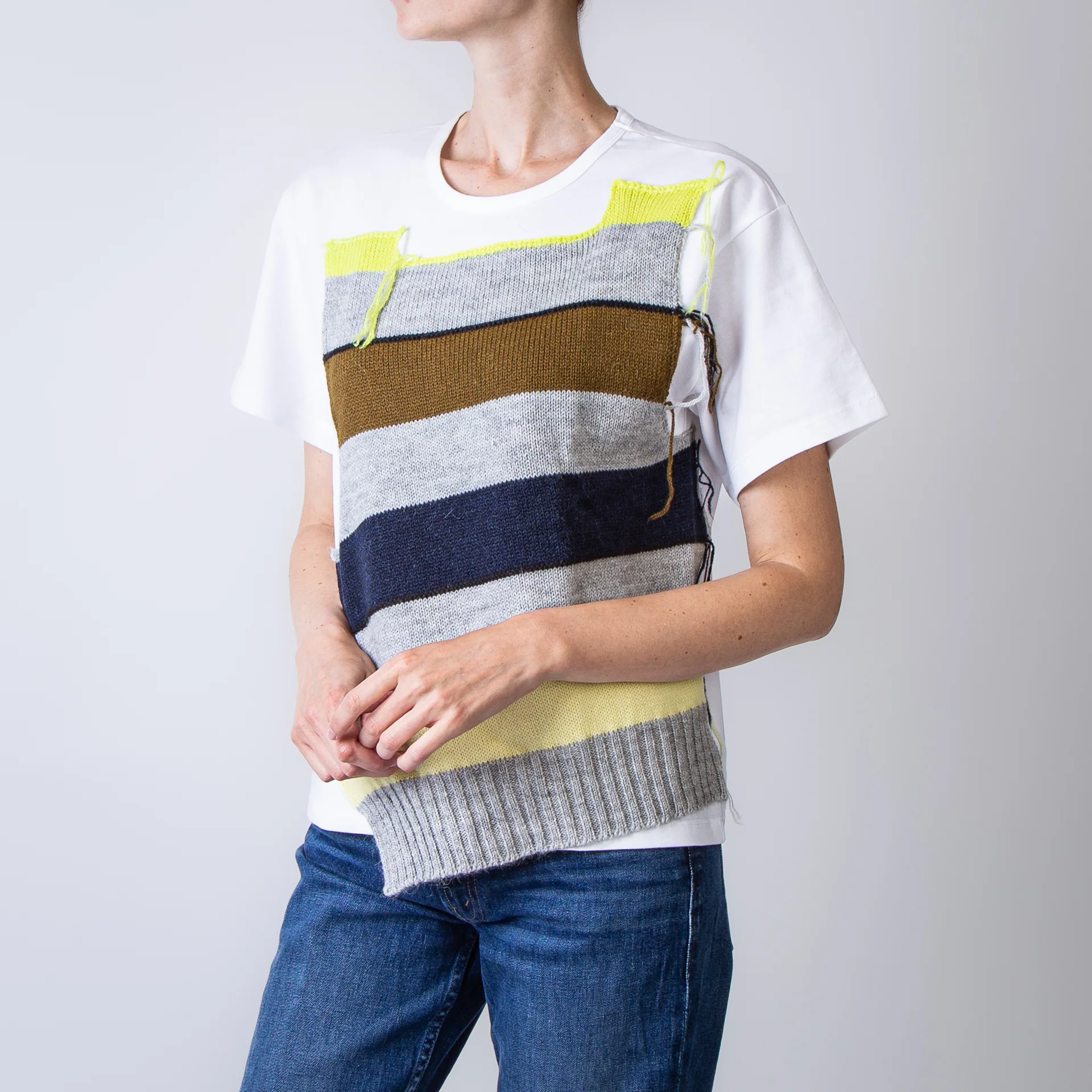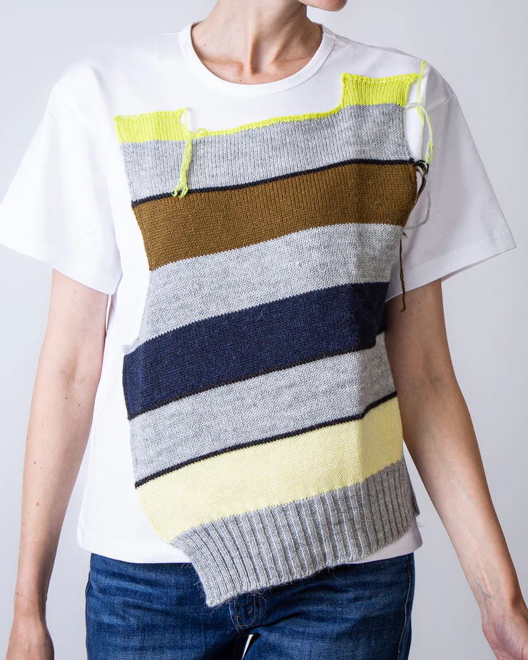 TSHIRT IN COTONE CON INSERTI DI LANA COLORATA DAVANTI