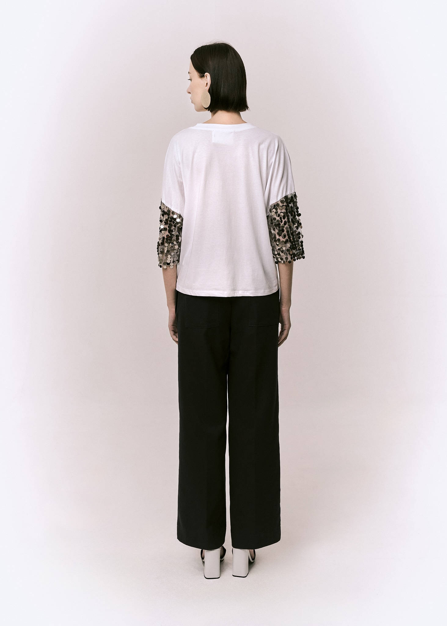 TSHIRTMANICA RAGLAN IN COTONE CON MANICHE IN TESSUTO PAILLETTES